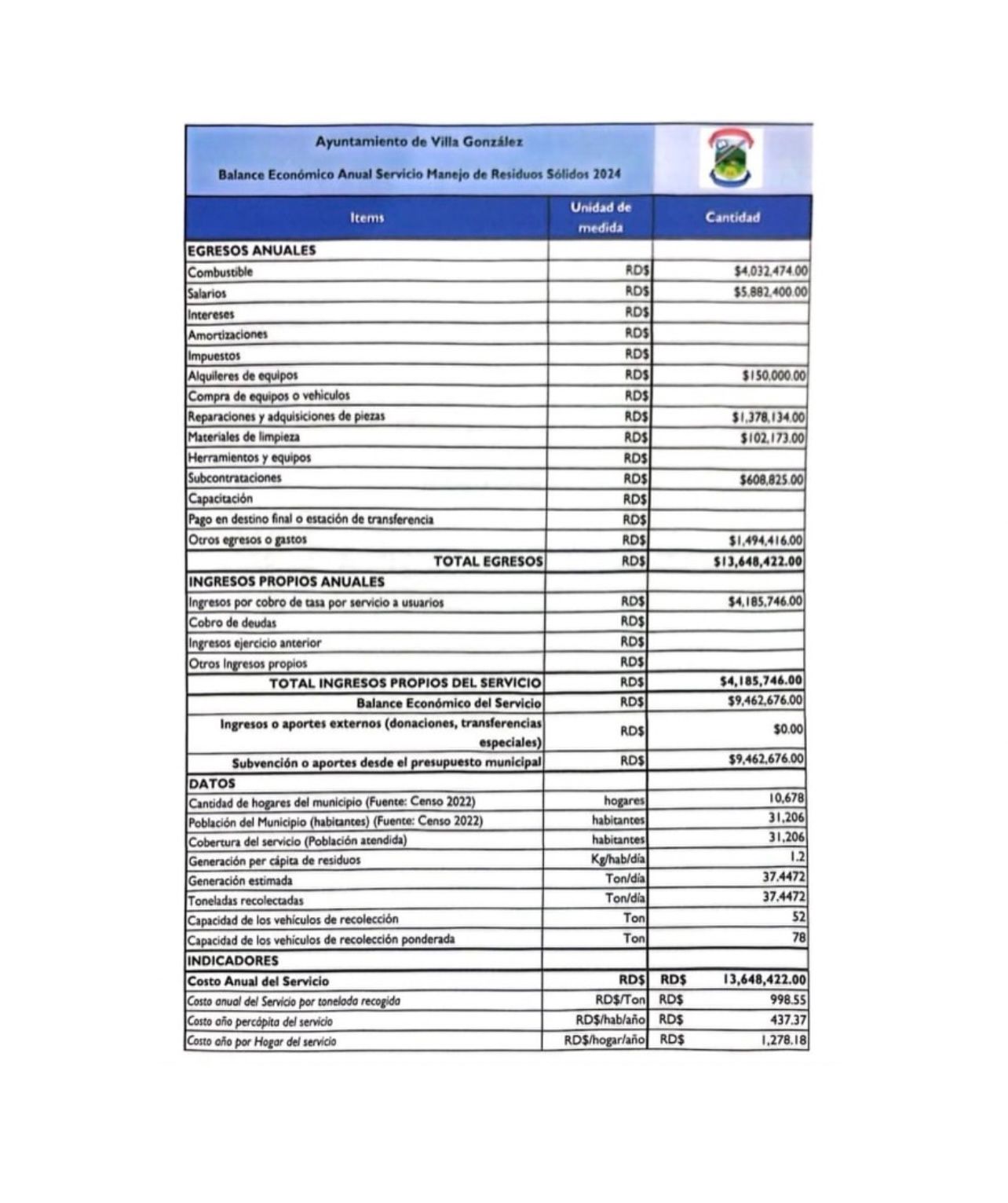 Balance Económico Anual del Servicio de Manejo de Residuos Sólidos al 31 de Diciembre 2024.