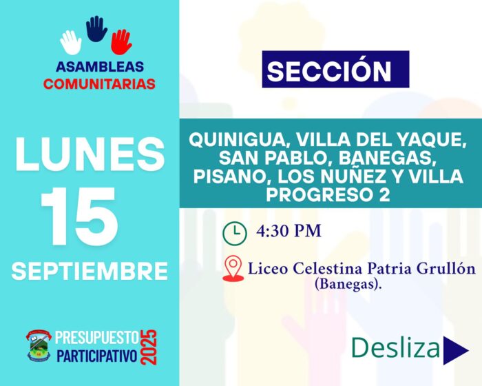 Desde el Ayuntamiento de Villa González, invitamos a todos nuestros municipes a participar de los encuentros por secciones que se estarán realizando en los próximos días.
