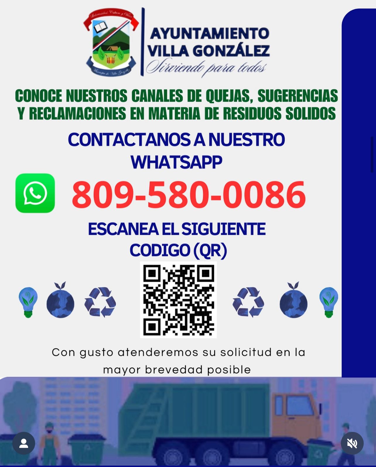 “Conoce nuestros canales de quejas, sugerencias y reclamaciones en materia de Residuos Sólidos”.