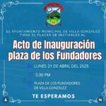 17 abril, 2025El Ayuntamiento Municipal de Villa González tiene el placer de invitarles al: Acto de Inauguración Plaza de los Fundadores. Fecha:...