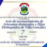 5 marzo, 2025El Ayuntamiento Municipal de Villa González tiene el placer de invitarles al Acto de reconocimiento de Artesanos destacados e Hijos...