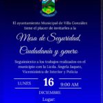 12 diciembre, 2024El Ayuntamiento Municipal de Villa González tiene el placer de invitarles a la mesa de seguridad, ciudadanía y género. Seguimiento...