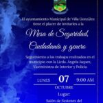4 octubre, 2024El Ayuntamiento Municipal de Villa González tiene el placer de invitarles a la mesa de seguridad, ciudadanía y género. Seguimiento...