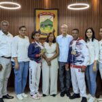 Ayuntamiento de Villa González recibe a atletas destacados en competencia panamericana de taekwondo ITF en Colombia.