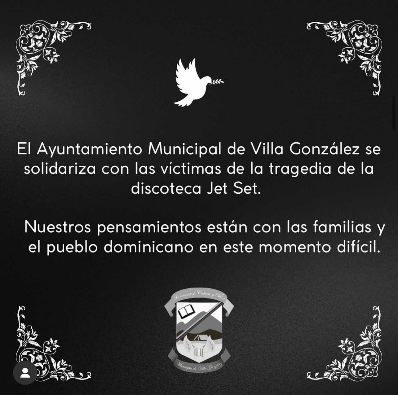El Ayuntamiento Municipal de Villa González se solidariza con las víctimas de la tragedia de la discoteca Jet Set.