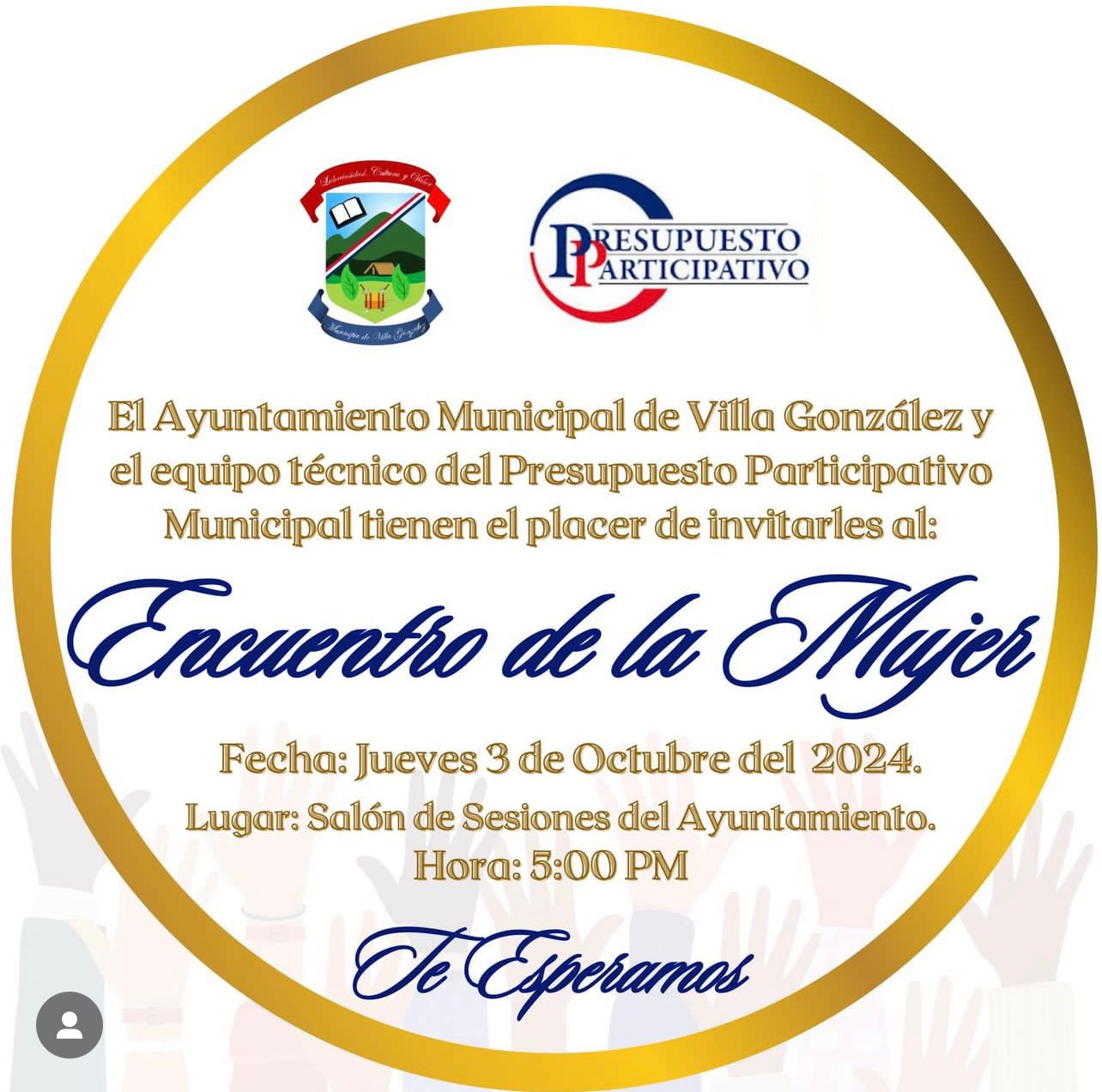 El Ayuntamiento Municipal de Villa González y el equipo técnico del Presupuesto Participativo Municipal tiene el placer de invitarles al encuentro de la Mujer.