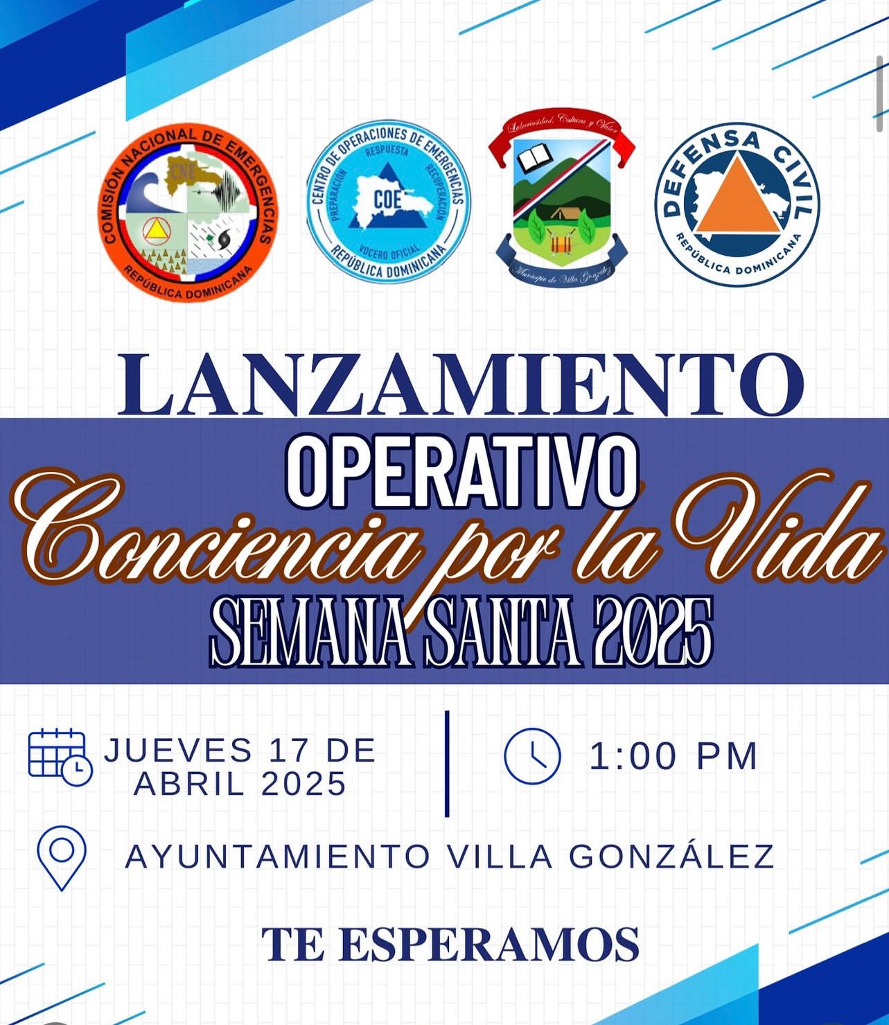 El ayuntamiento municipal de Villa González, te invita al lanzamiento del operativo conciencia por la vida, semana santa 2025.