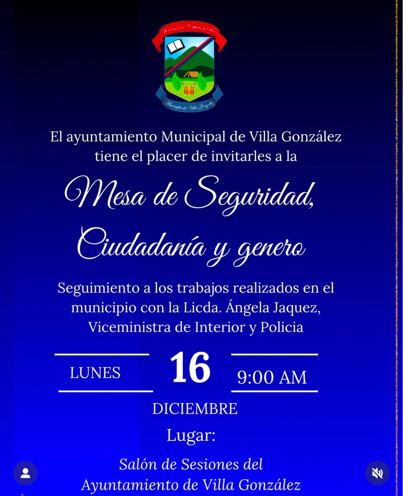 El Ayuntamiento Municipal de Villa González tiene el placer de invitarles a la mesa de seguridad, ciudadanía y género.