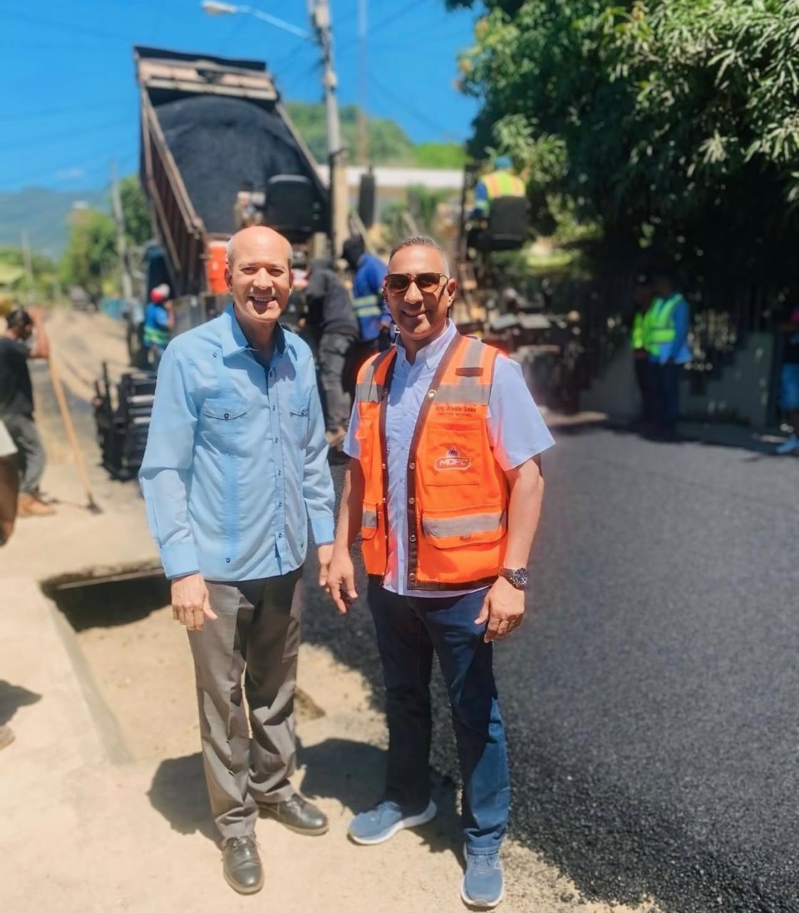 Ayuntamiento de Villa González, nuestro alcalde municipal el Ing. César Álvarez, Junto al Arq. Alexis Sosa, Director Provincial de Obras Públicas, supervisando los trabajos de Asfaltado en la comunidad de Villa del Yaque.